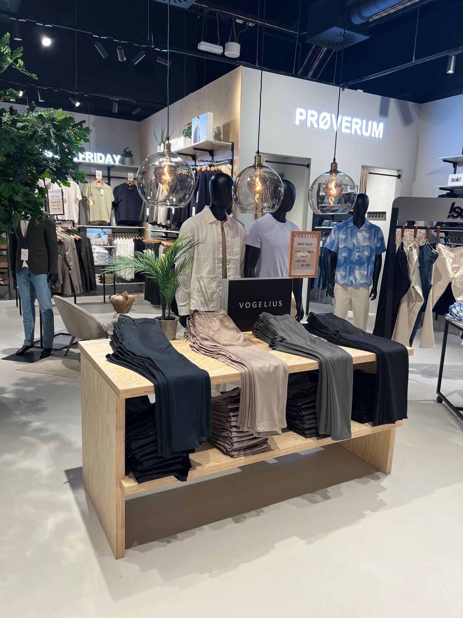 mange salgsborde i lys træ.