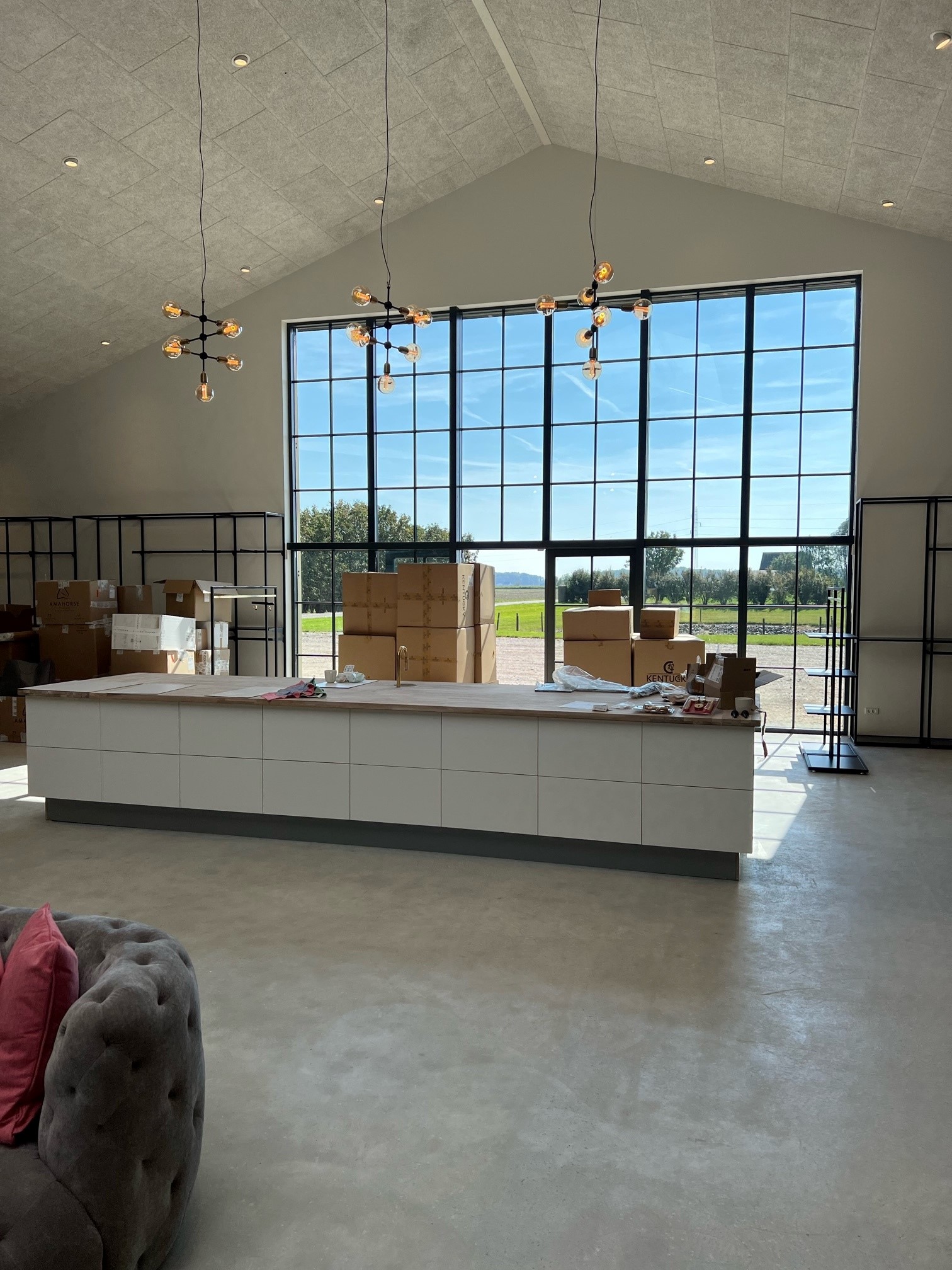 De hvide reoler er her vist med skuffe kasserne i bunden af reolerne.