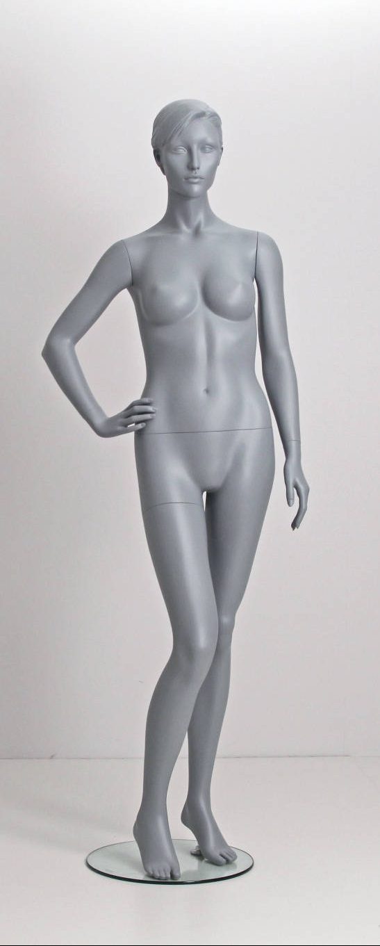 Dame mannequin «Nelly Grey» i flot grå farve, som kan fås i 6 forskellige positioner. Mannequinen har vores helt unikke neck-lock system, som gør det muligt helt at undlade at sætte et hoved på og istedet bruge mannequinen som hovedløs. Mannequinen kan også fås i andre farver.