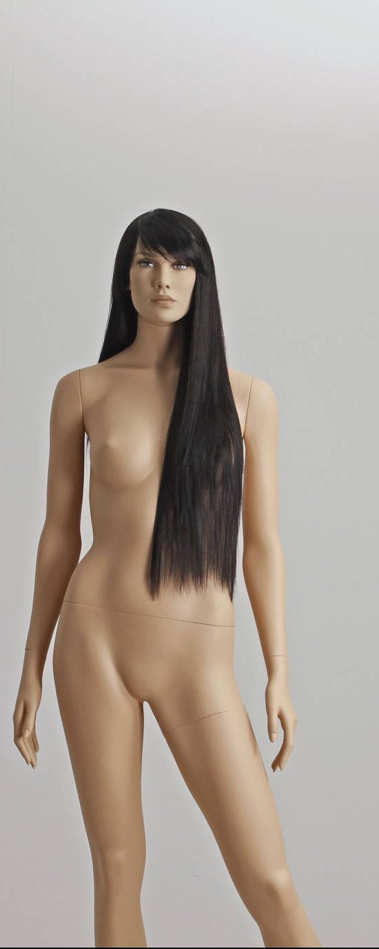Flot lang dame paryk med pandehår i farven sort. Parykken kan styles let, dog uden brug af føntørre, fladjern og andre varme styling produkter.